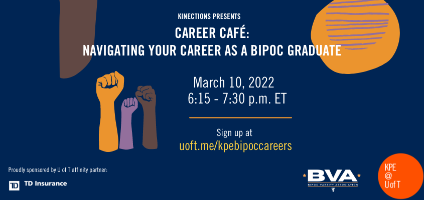 Join us on Thursday March 10th from 6:15 - 7:30 p.m. ET for an engaging and important discussion on BIPOC experiences in careers after a KPE degree! Featuring KPE alumni, this event will give you the opportunity to interact with and learn from alumni, and hear their experiences as BIPOC individuals in their fields. Open to BIPOC students and allies. The event will be held over Zoom.
