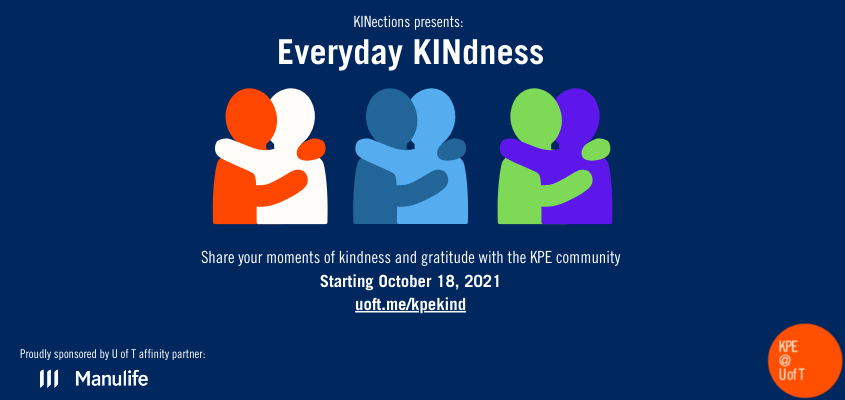 If you’re on Instagram, tag @uoftkpe and use the hashtag #kpekind in your Stories or posts. You can also send a photo and/or note to kinections@utoronto.ca to share your act of kindness or moment of gratitude.